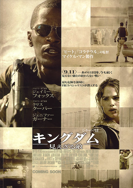 10月2週目の週末興行。先週に続いて、大きな変動の無い静かな秋興行の雰囲気だ。初登場が「キングダム/見えざる敵」。ジェニファー・ガーナーとジェイミー・フォックスの共演のサスペンス。マイケル・マンが製作を担当しているので、かなり硬派なイメージがする。まだ未見だが作品の評価はそこそこ高い。しかし華が無い秋の興行、週末はデ・ニーロ監督作「グッド・シェパード 」が公開。何を見ようかと思っても観たい映画がこれしか見つからないのは視野が狭いのか、作品不足なのか・・・